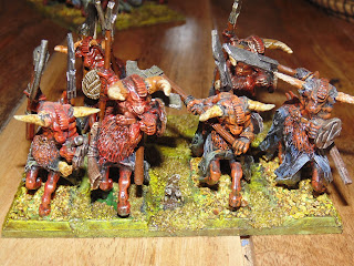 Here are the completed Longhorns, with their bases painted and some courser gravel added. Then the whole lot glooped over with acrylic antique oak stain, watered down with washing up liquid added.